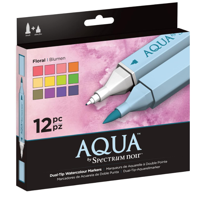Yes, Spectrum Noir markers can be combined with watercolor painting. Use markers first to lay down color and outline major elements. After the markers are dry, watercolor can be applied lightly over the marker itself or in the negative space around the marker. The colors interact beautifully.
