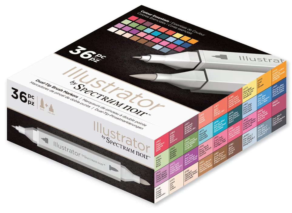 Spectrum Noir Illustrator markers have flexible brush nibs allowing 2-4mm stroke widths. They have a higher ink content than the original marker nibs. The Illustrator markers also feature numbered barrels for easy reference. They work well for calligraphy, hand lettering and other brush stroke techniques.