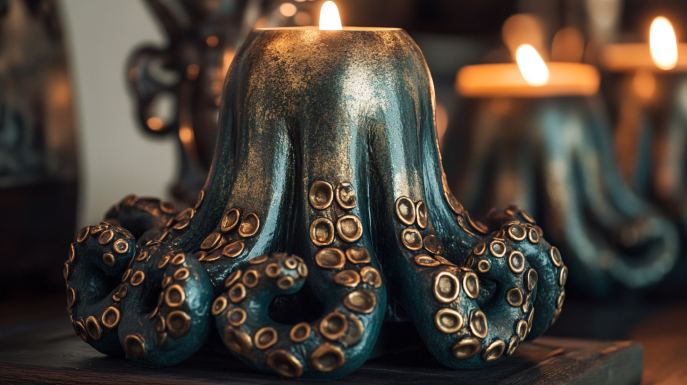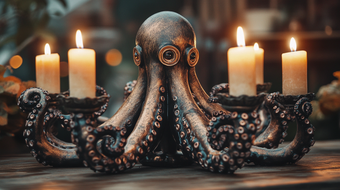Place them on an end table, mantel, or shelf. Style them with books, seashells, and other nautical decor. Use the octopus pillar candelabra as a centerpiece on a dining table. Hang the octopus lantern in an entryway or above a reading nook.